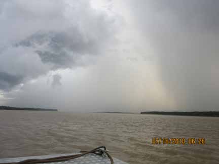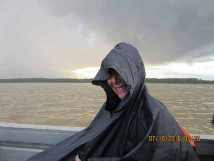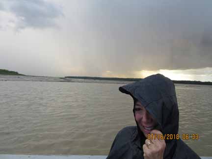 ![]() Just before dusk we journey into the rainforest on a skiff, where we are greeted by the only downpour of the trip... |